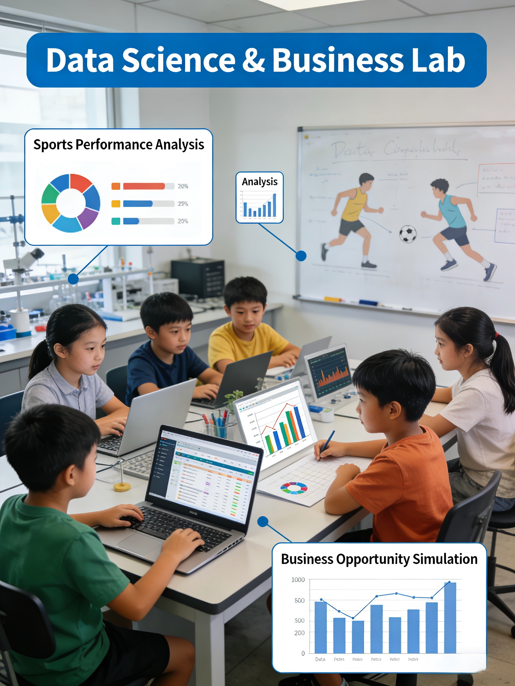 Data Science & Business Lab is a rigorous, real-world programme that teaches students what data science truly is: a disciplined approach to making better decisions in business, sport, government, and society. Rather than focusing on coding in isolation, students learn how data informs judgement, strategy, and tradeoffs. Working with authentic datasets and realistic simulations, students analyse sports performance, evaluate business opportunities, and respond to changing market conditions. They examine real data from Japan, the United States, and global markets, and communicate insights through professional presentations—mirroring how analysts, executives, and policymakers actually think and operate.